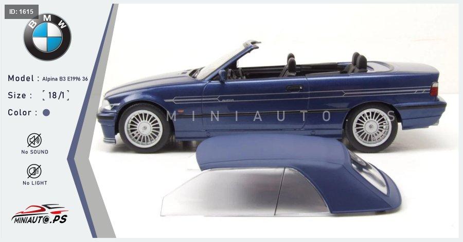 مجسم BMW Alpina B3 E36 1996 إصدار Modelcar بحجم 1/18 وباللون الأزرق الكلاسيكي، يجسد أحد أندر وأجمل إبداعات Alpina على قاعدة الفئة الثالثة من جيل التسعينات.
