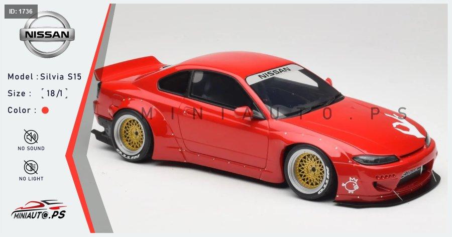 هذا المجسم يظهر الـ Silvia S15 بروحها الحقيقية: رفارف واسعة، صدامات هجومية، دفيوزر خلفي قوي، وجناح يعطيها حضور سباقي خالص.