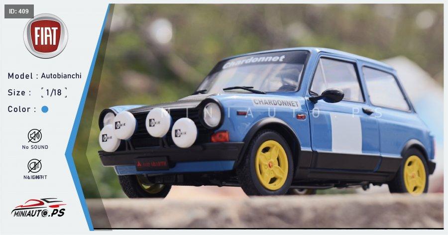 سيارة فيات اوتوبيانكي Fiat Autobianchi مميزة كلاسيكية بتصميم رياضي رائع لون ازرق وتفاصيل مميزة قياس 1/18 لهواة المجسمات النادرة